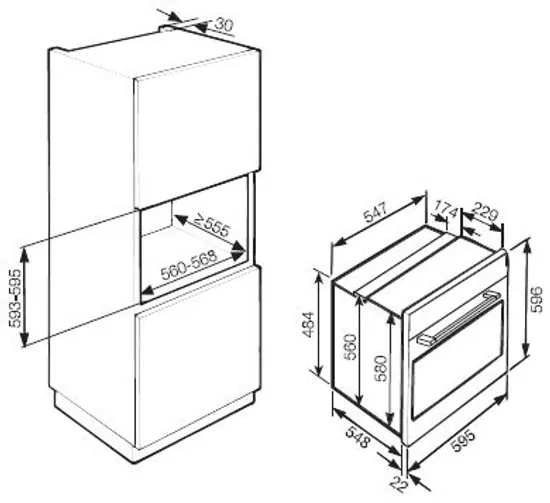 Размеры для встраивания (ВхШхГ) : 590х560х550 мм