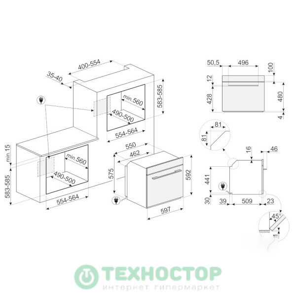 Ширина встраивания : 55 см