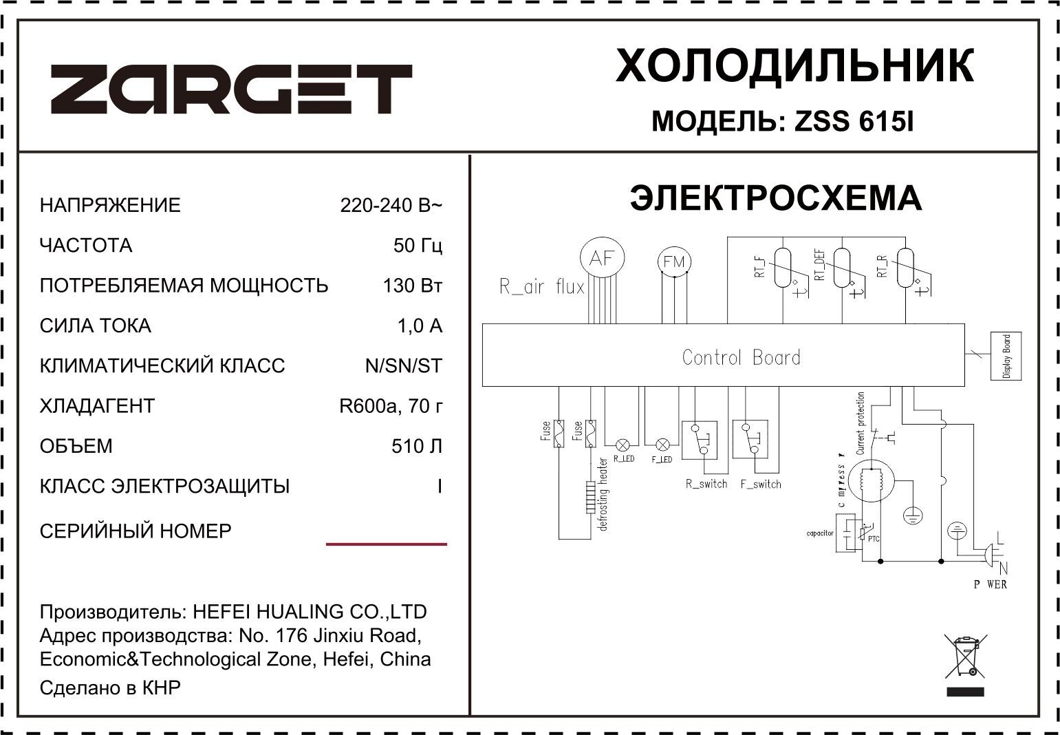 Холодильник Zarget ZSS 615 I