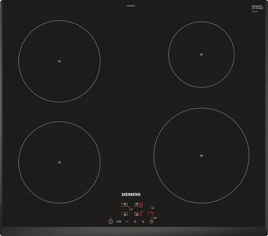 Индукционных зон нагрева : Индукционные конфорки: Индукционные конфорки варочных панелей Siemens имеют высокую мощность, они обеспечивают максимально быстрое закипание, отличаются высокой точностью регулировки нагрева. В процессе приготовления блюда сами конфорки остаются холодными, нагревается непосредственно дно специально предназначенной посуды.: 4