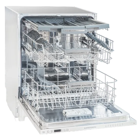 Комплектация: регулируемая по высоте корзина для посуды, полки для чашек/бокалов, корзина для столовых приборов