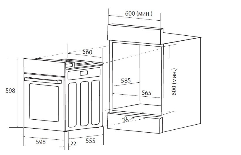 Высота встраивания : 60 см