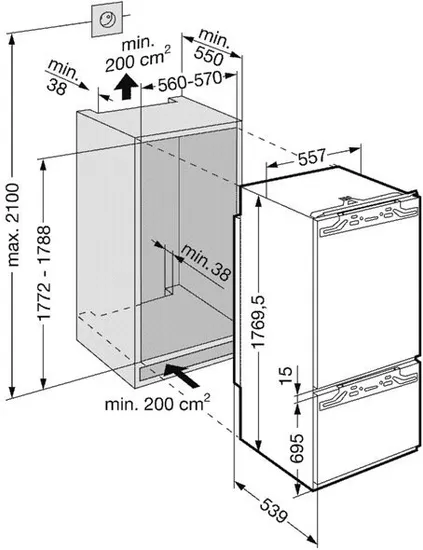 Размеры для встраивания (ВхШхГ) : 1790х570х560 мм