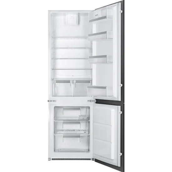 Крепление фасадов – скользящие направляющиеДверцы перенавешиваемые, петли справаОбщий объем 272 лЭлектромеханический контроль температурыХолодильное отделение:Полезный объем 195 лВентиляторАвтоматическое размораживание4 регулируемые полки из закаленного стекла1 фиксированная полка из закаленного стекла2 ящика для овощей и фруктовВнутреннее освещение LEDНа дверце:3 полки с окантовкой1 полка с прозрачной крышкойЛоток для яицМорозильное отделение:Ручная разморозкаПолезный объем 72 л3 ящикаФорма для льдаНоминальная мощность: 140 ВтПотребление электроэнергии: 291 кВт/годУровень шума: 35 дБ(А)Климатический класс: SN-N-ST-TПоддержание температуры при отключении энергии: 21 часМощность замораживания: 4 кг/ суткиНапряжение: 220-240 ВЧастота тока: 50 ГцРазмеры (В х Ш х Г): 1772 х 548 х 549 мм