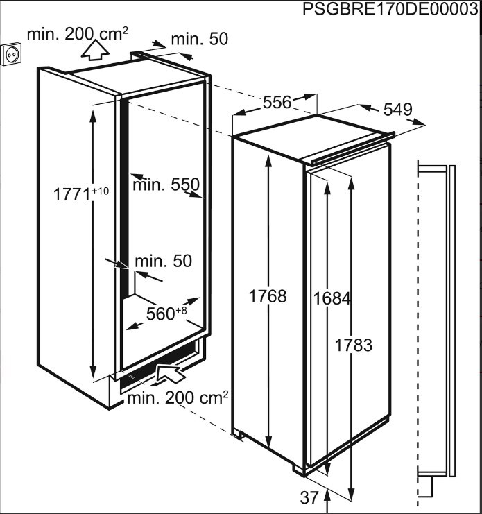 Размеры для встраивания (ВхШхГ), мм: 1780х560х560